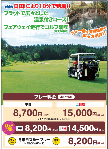 プレー料金のご案内【3月~6月】